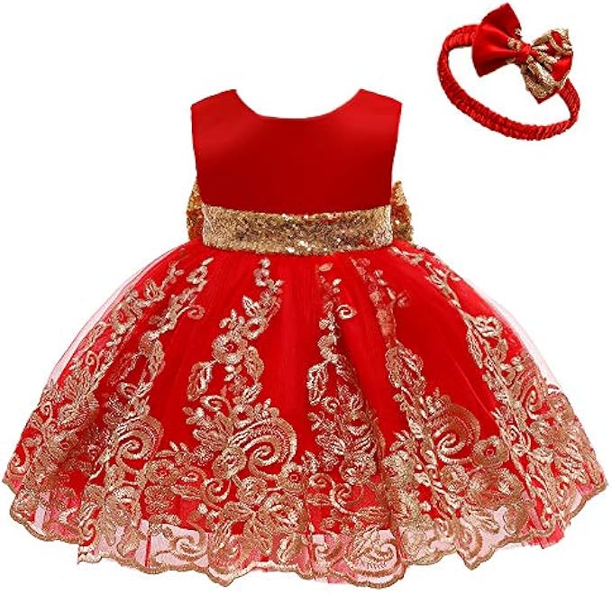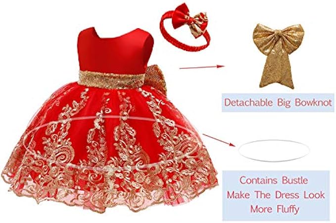 • FEATURES - Detachable Big Bowknot, Lace Flowers,Free Headwear, Ball Gown, Back Zip, Sleeveless, Round Neck,Knee Length,Ruffles Gorgeous Dresses for Baby Toddler Princess Girls