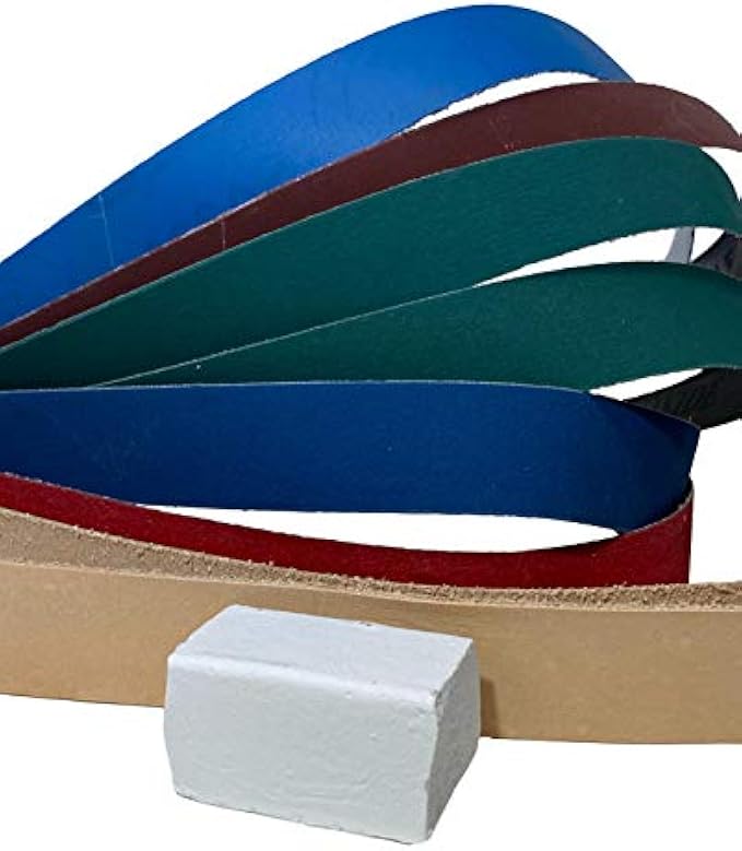 • This pack includes 1 Leatherbeltman 1x30 Leather Honing Strop Belt, White Diamond Buffing Compound, and six Grit Belts