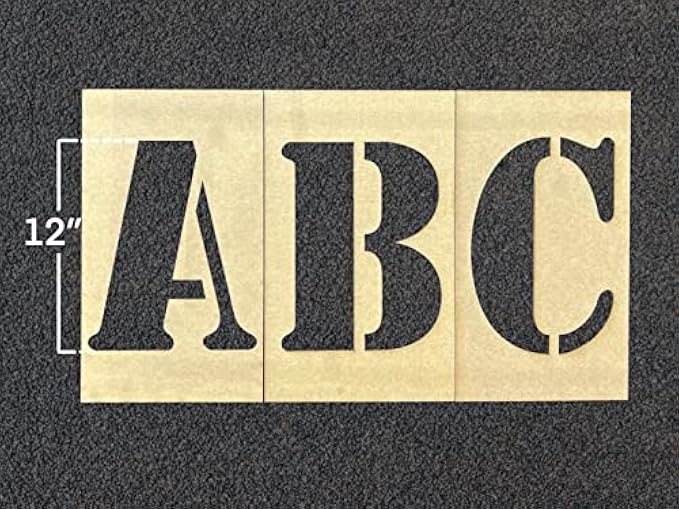 12" Alphabet & Number Stencil Kit Pavement Letter Templates A-Z & 0-9|No Spray Paint|Reusable|Parking Lots & Curbs Asphalt or Concrete|Made w/Recycled Cardboard|Made in USA