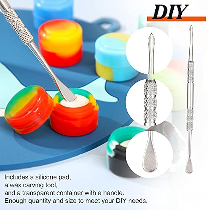 Package includes: You will receive 150 silicone wax containers, 1 wax carving tool and 1 mat and 1 large plastic jar, enough quantity for you to share with family or friends