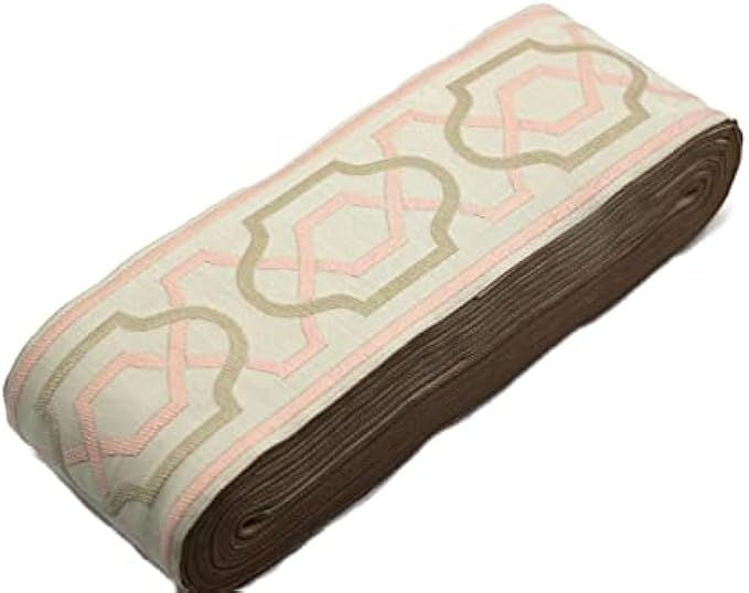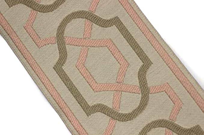 16 Yards Length 3.93 inch Width Beige and Pink Geometric Drapery Trim Jacquard Ribbon for Your Drapes Curtains Drapery Banding Tape Upholstery Fabric 173-V3