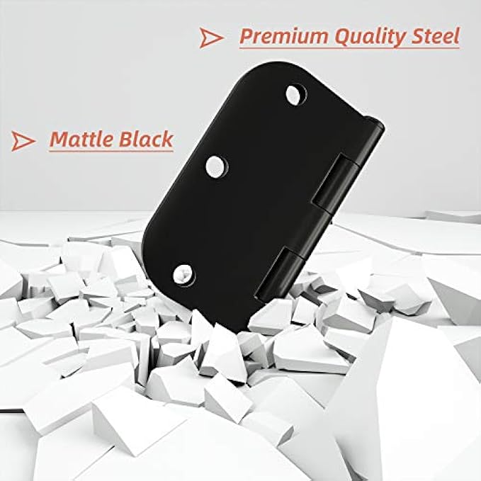18 pack standard 3.5 x 3.5 inch door hinges, with 5/8 inch radius corners and 6 screw holes, compatible with the majority of interior residential doors.