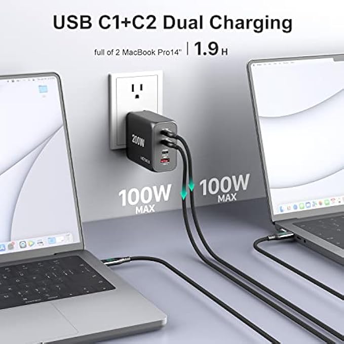 200W USB C GaN Charger Station WOTOBEUS PD 100W Type C 65W PPS45W Super Fast Charging 60W Laptop Power Adapter AC Cable for iPhone 14 13 Pro Max Plus iPad MacBook Samsung Galaxy S23/22/21 Note20 Pixel
