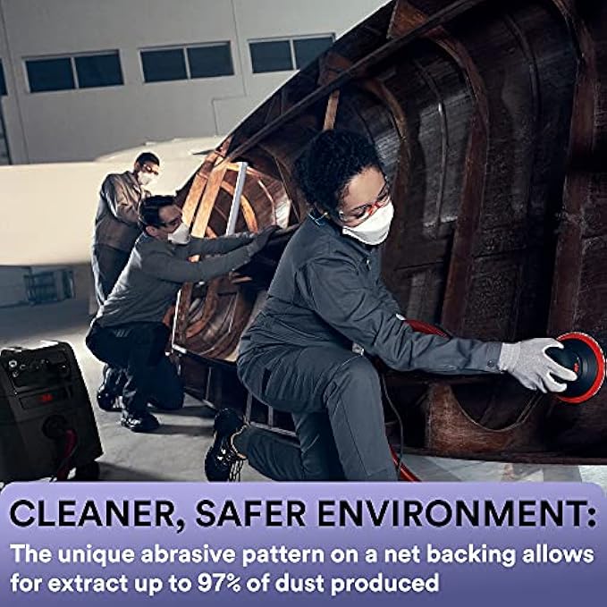 ENABLING A CLEANER, SAFER WORK ENVIRONMENT - The unique abrasive pattern on a net backing allows for extracts up to 99% of dust produced creating a cleaner, virtually dust-free work environment. You'll finish more parts per disc with less dust in the environment, boosting productivity without sacrificing dust extraction
