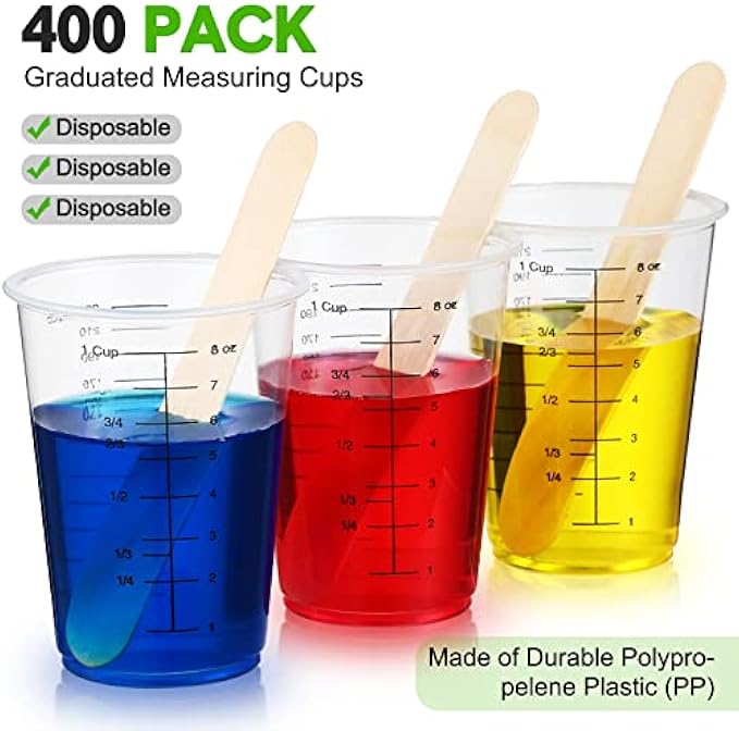 Plastic Measuring Cup Set: we will provide you with a total of 400 plastic measuring cups; A sufficient number can easily meet your daily use needs and replacement needs, making the measuring process easier for you, ideal for baking, cooking, painting or hand making