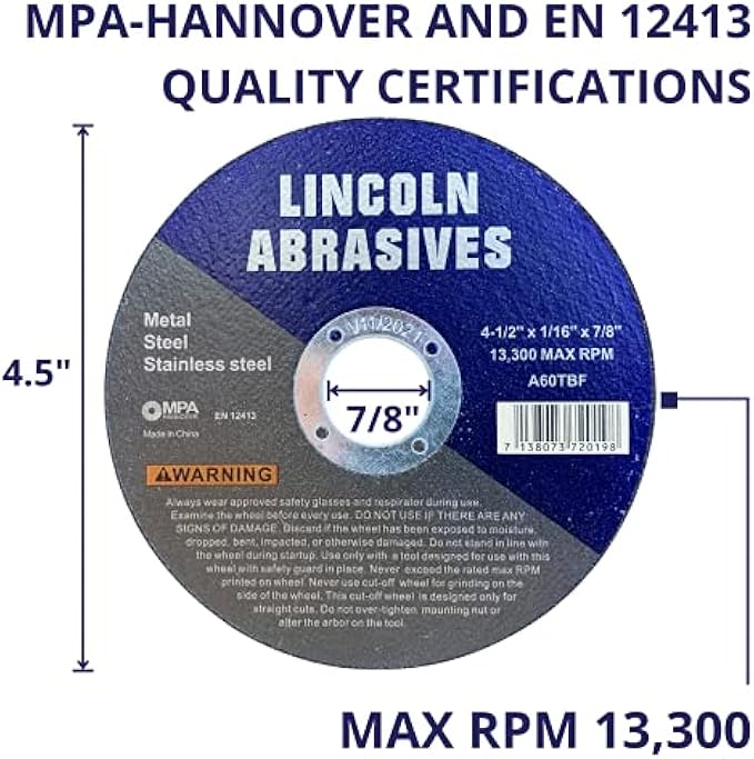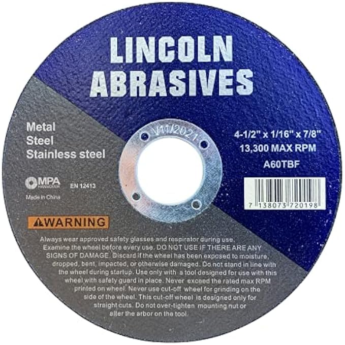 50 Pack 4-1/2" Cut-Off Wheels Lincoln Abrasives 1/16" Metal & Stainless Steel