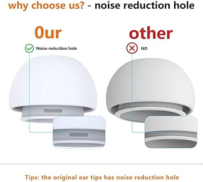 【Excellent Noise Reduction Function】Airpods pro and Airpods pro 2nd replacement ear tips have two noise reduction holes on the side, Almost identical to the original tip(other silicone ear tips do not have them), which can reduce noise to keep the best noise reduction effect of the original headphone;