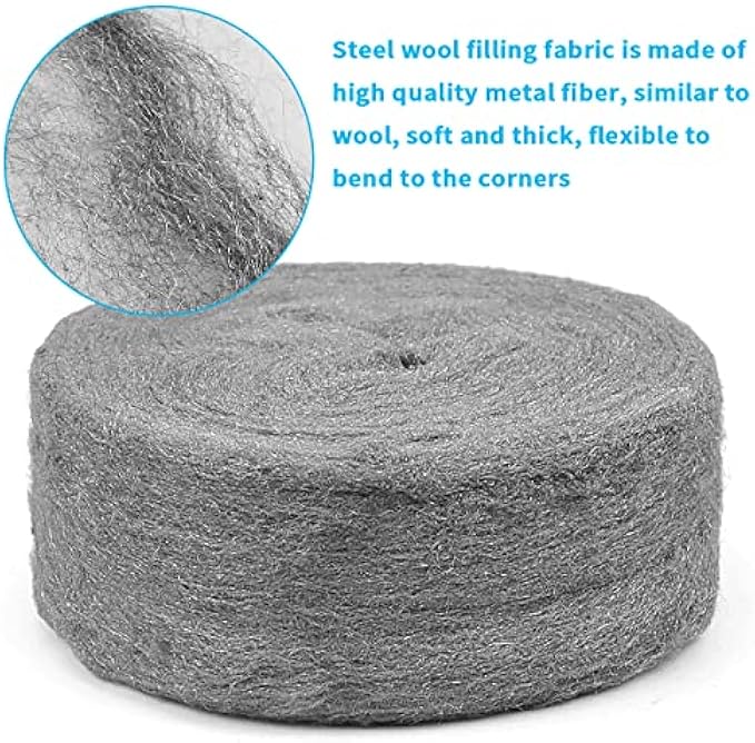 2.Steel wool filling fabric is made of high quality metal fiber, similar to wool, soft and thick, flexible to bend to the corners. Small animals can't chew through steel fibers, effectively blocking animals from entering your home