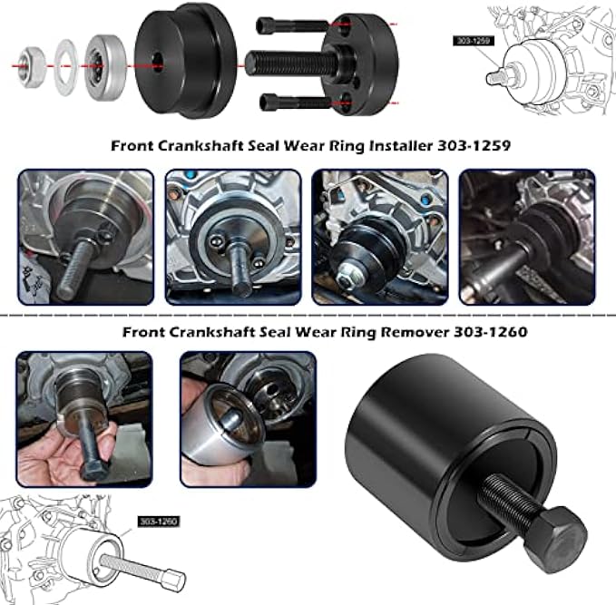 【303-761& 303-762 for Front Crankshaft】 For Ford 6.0L Powerstroke Diesel :F250/350/450/550/650/750 2004- 2007; E-Series 2004-2010; Excursion 2004-2005 & VT365-MaxxForce7 Navistar International. Replace part number: 303-761 ZTSE4516 ST-107 & 303-762 6886 ZTSE4517 ST-130. Also,303-762 removal tool works for Ford 4.5L Diesel : Low Cab Forward 2006-2008.