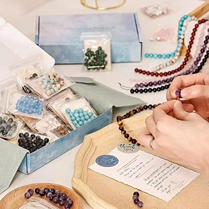 Jewelry Making Beads: DIY Bracelet Bead Making Kit features powerful healing and colorful natural round stones. It helps relieve symptoms of depression, anxiety, headaches, asthma, coughs, and migraines. Thoughtful gift for friends, family, and yourself.