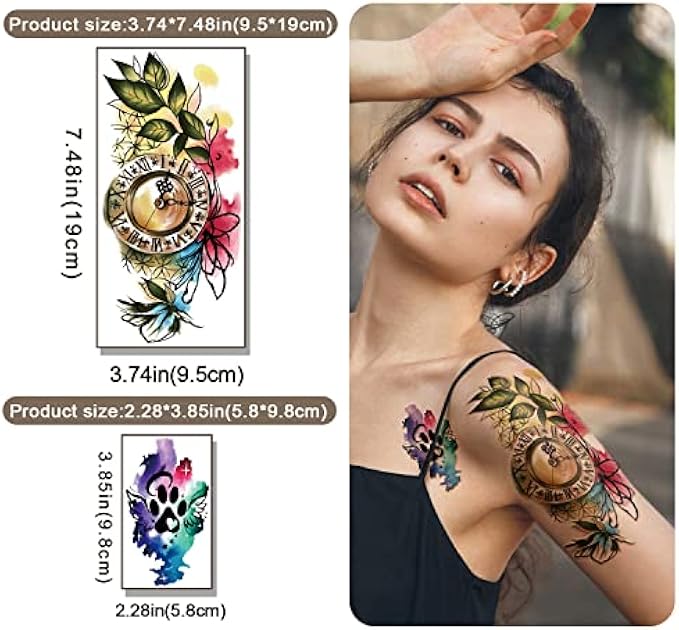 【77 SHEETS/LOT】It comes in bigger and smaller sizes, Half arm tattoos can cover your body parts large, size 7.48 * 3.74 in (19 * 9.5 cm) * 17 pieces, small lovely tattoo stickers size 3.85*2.28 in (9.8*5.8cm) *60pieces. Semi permanents tattoo also can apply them to some smooth objects, like glass, cup, stationery, phone case etc. 【EASY TO USE】In 10-20 seconds with just water, you can paste it quickly in less than a minute, they keep a natural look for 3-5 days (like a fresh tattoo). And it is also easily removable, washable, clear off by rubbing with alcohol or body oil. 【WATERPROOF&LASTING】The temporary tattoos are waterproof, non-toxic and non-allergic. You don't have to worry about sweating, bathing, swimming and other activities will wash it off. The fake tattoos will last for 3-5 days. If you are more careful, it will stay on your skin longer. 【REALISTIC&PAINLESS】If you are scared to get a real tattoos, temporary tattoos for men, women and teens will be your best choice. Get one like a real tattoos without any pain and leave no scar! You can stick it on the arms, hands, fingers, legs, feet, collarbone, neck, chest to show your personality and express your ideas. 【FOR MUTIPLE ACCASION】Suitable for different occasion of party, school, holiday, photograph, nightclub, beach, wedding, bridal showers, sleepovers, music festivals, costume, workplace, and daily-life. Mixed and match a great combination of tattoos together even your friends will think it was real! Enjoy this mostly-fun thing with your friends and family!