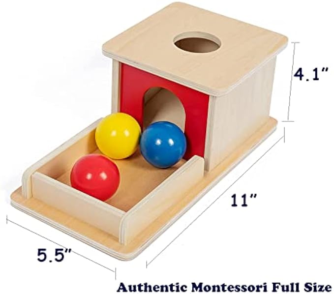 Adena Montessori Full Size Object Permanence Box with Tray Three Balls Montessori Toys for 6-12 Month Infant 1 Year Old Babies Toddlers