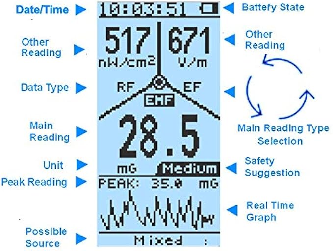 • Read EMF, RF and EF at same screen at once