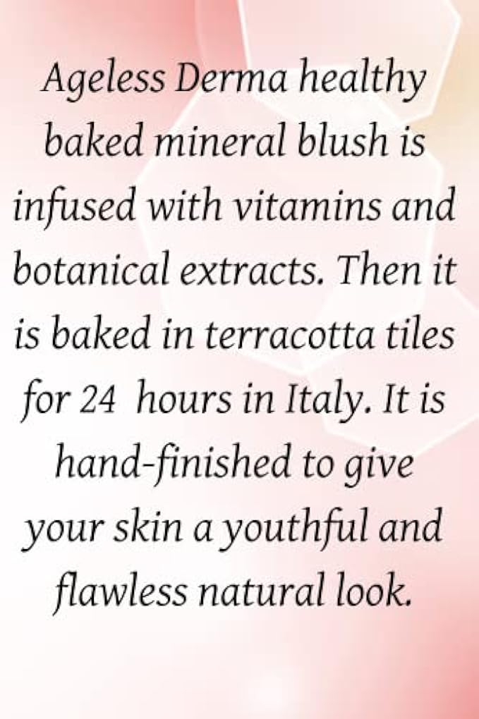 Ageless derma healthy blush is Baked for 24 hours in Terracotta tiles in Italy; then hand-finished for no fuss and easy application, blending perfectly with your skin tone. It doesn't set on your fine lines and wrinkles—a perfect choice for aging and mature skin. It makes the skin looks healthy and feel healthy to maintain its natural radiance.