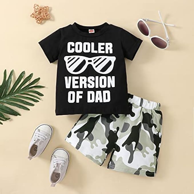 Design: Classic black T shirt shorts design. Different funny letter printed on tops - Comfy shorts outfits for hot summer! Elastic waistband with shorts for a more comfortable fit and easy for boys to dress up and put off.