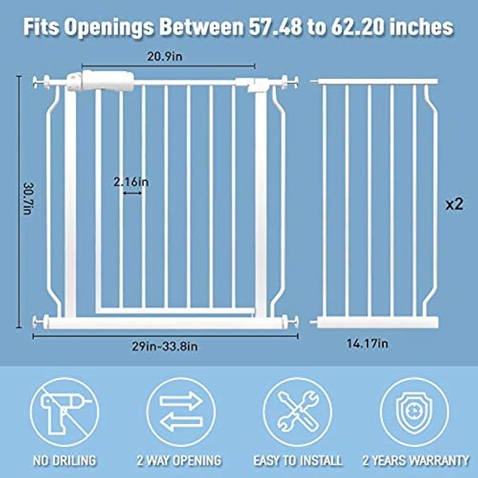 ALLAIBB Extra Wide Pressure Mount Baby Gate Auto Close White Metal Child Dog Pet Safety Gates with Walk Through for Stairs,Doorways,Kitchen and Living Room 62.2-66.9 in (57.48-62.20"/146-158cm)