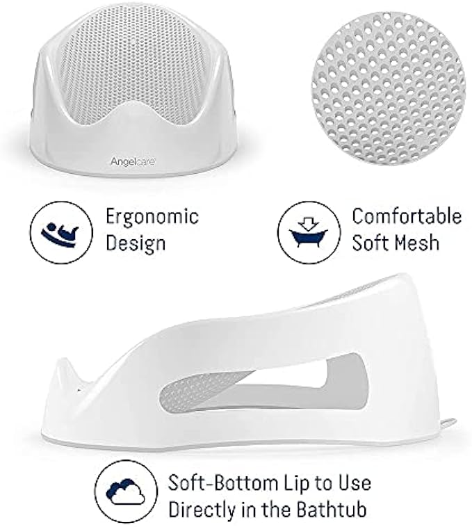 CONVENIENT BABY BATHER: The Angelcare Baby Bath Support makes bath time easier and safer! Simply place the bather directly in the bathtub to secure and cradle your baby while partly immersing your child’s body into the bath water.