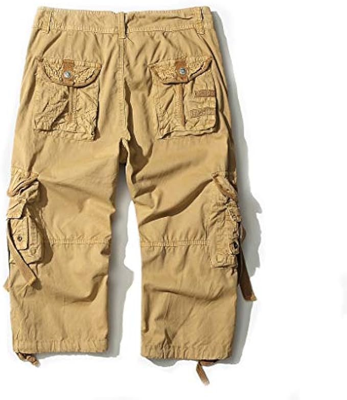 100% Cotton Zipper closure Machine or Hand Wash Fabric: 100% cotton, comfortable, breathable, ideal for spring, summer, fall Style: Men cargo long shorts, 3/4 relaxed fit below knee shorts, capri cargo pants, 14" inseam, straight legs, sits comfortably at waist, adjustable straps Pockets: 2 side slant pockets, 2 cargo snap closure flap pockets, 2 back snap closure flap pockets Occasion: Suitable for camping, hiking, climbing, ,jogging, walking, picnic, outdoor sports, vacation, daily leisure etc. Kindly Remind: No belt included, machine washable, do not bleach, hang to dry, do not iron, please check size chart before placing the order, if you have no idea, you could buy one size up than you usual wear