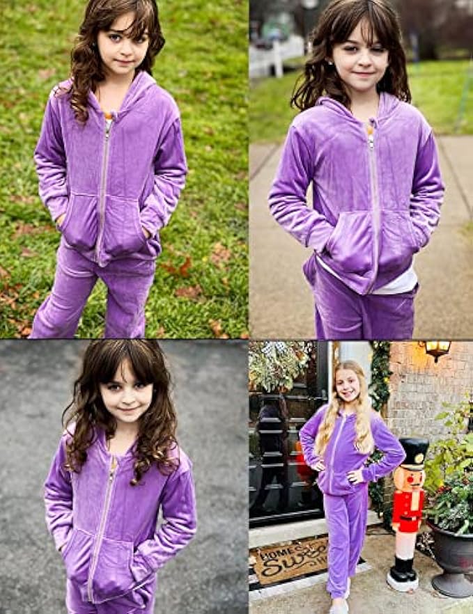 WARM FABRIC:Girls sweatsuits with a buttery-soft texture similar to velvet, lend a luxurious sheen to fashion look. Stretchy and drape, velour outside only, promise cozy wear all day