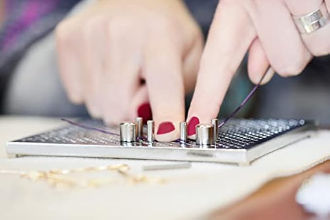 Includes: Deluxe Thing-a-ma-Jig has a sturdy 4" x 5" (10cm x 13cm) aluminum base, 30 aluminum pegs, 6 patterns, 1 blank template and full instructions.