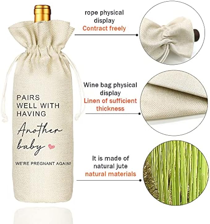 Baby Announcement Wine Bag, Pregnancy Announcement, Gift for Grandparents, Aunt and Uncle - Pairs Well With Having Another Baby,We Are Pregnant Again(5SW19103)