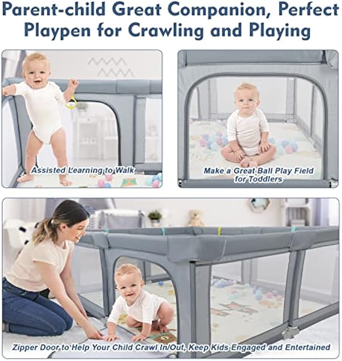 【Visible Baby Activity Area】Our baby playpen is friendly and breathable with 360 degree transparent mesh so you can see your baby and your baby can see you. Interaction at any time, give the baby a sense of security. It's a safe baby play space for babies to explore their own world when you're busy doing other things or need a quick break.