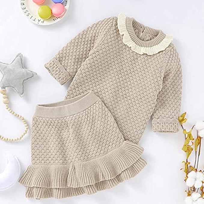 Babys Newborn Infant Girls Boys Spring Winter Knit Sweater Warm Thick Ruffle Long Sleeve Skirts Set Outfit Clothes Girl