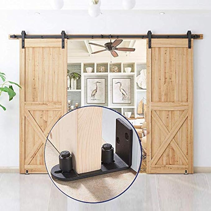 ►WE MAKE A DIFFERENCE! A heavy stay roller bottom guide is an esseonstruction-Black Powder Coated finish: Our premium black powder coantial component to a proper sliding door installation.However,if you buy a cheap door guide, every time you slide your door open, you will either alert your dog or wake somebody up.So, if you are really need a working door guide that's quality made, ball bearing wheels are smooth, and quiet,the barn door guide by SMARTSMITH is the solution you've been looking for!