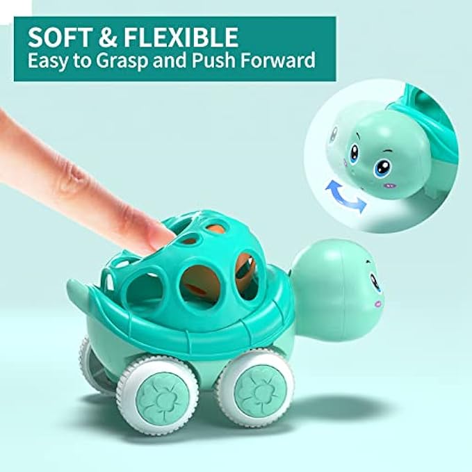 ?Rattle and Roll Cars: 3pcs different vivid &lovely cartoon toy cars. Include tortoise, truck and crane. Soft and flexible, easy for baby to grasp.