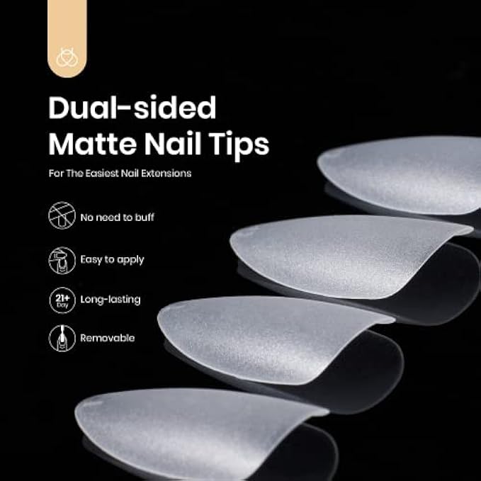 Beetles Gel Nail Tips for Nail Art, 510Pcs Matte Medium Almond Pre-shaped Clear Full Cover False Nails for Gel Art Polish, Soak Off Nail Extensions Acrylic Nails False Press on Nail Tips
