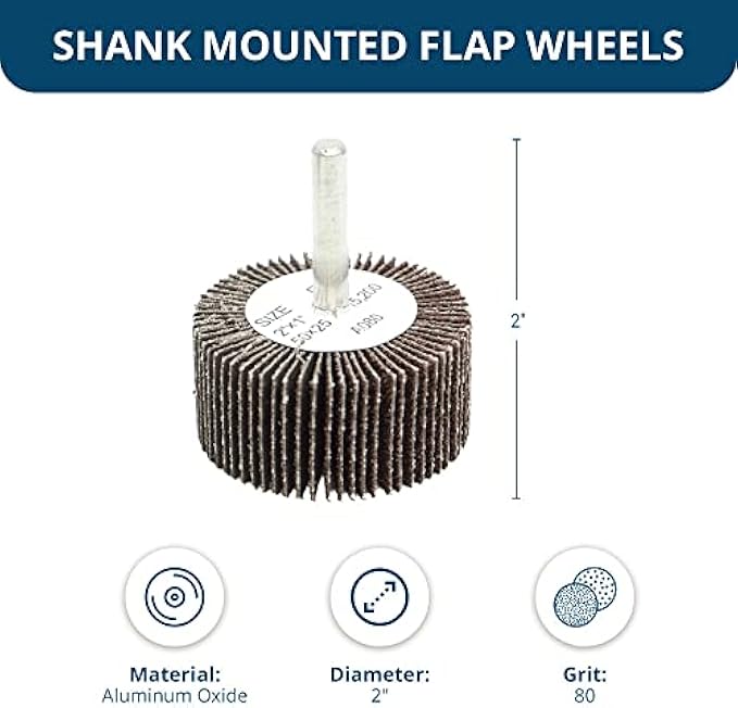 Benchmark Abrasives 2" x 1" aluminum oxide flap wheels are perfect for surface polishing, finishing tools, pipes, cylinders, rust or paint removal, cleaning weld splatter, etc.
