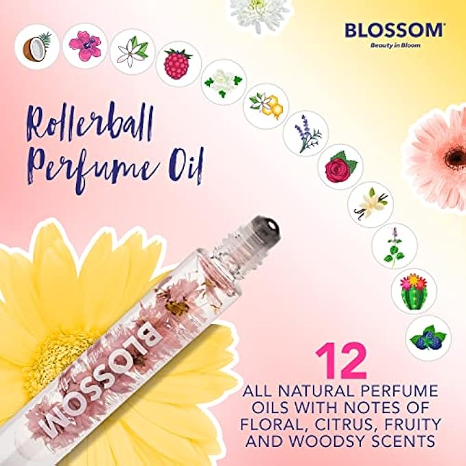 ALL NATURAL, NATURE INSPIRED SCENTS: Patchouli Rose is a rich and sensual floral blended with the scent of woodsy patchouli. It has an earthy, spicy, and slightly sweet aroma that is pleasantly rich and exotic. Carefully crafted and infused with real flowers in every bottle LONG-LASTING PERFUME OIL: Perfume with essential oils is activated by body heat, simply glide the easy-to-use roller-ball applicator over pulse points to heat and help fragrance develop faster. Makes the perfect gift and conveniently sized for your purse or on the go CLASSIC + LUXE SCENTS: Choose from our 6 Classic scents (Venice Beach with a hint of Bel-Air on a spring afternoon), or our 6 Luxe Scents (sophisticated and layered with floral, citrus, and woodsy experiences). All infused with real, natural-dried flowers and blended with nurturing Jojoba seed oil MADE IN THE USA: Cruelty-free, paraben-free, vegan, gluten free, and made with high quality all natural ingredients. These make the best stocking stuffers for Christmas, Halloween, Birthday, New Years, Easter, Women, Teens and make up enthusiasts BLOSSOM LINE: Be sure to check out the rest of Blossom's coordinating products - lip gloss, lip balm/tint, lip oil, roll on perfume oil, cuticle oil, polish remover, nail top coat and base coat, highlighter powder, luxury fragrance eau de parfum spray, eye serum, face oil, aromatherapy body gift sets and more