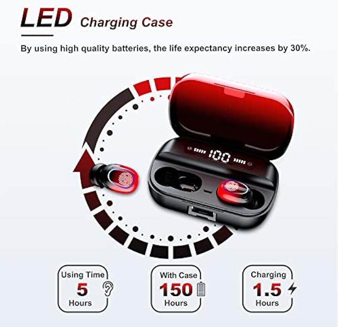 I bought the blue HBQ and Ziuty A1 simultaneously to compare them. Both arrived the next day. HBQ was charged at 95% on arrival and took 2 hours to reach 98%. The sound quality is good, not as loud in comparison and it fits snugly and very comfortably, however when I used them during a workout both sides fell out twice. No damage so they seem durable. The noise cancelling effect was noticeable compared to the other brand. After 20 minutes of use I was only down to 91%. Phone connection was excellent and stayed connected from about 20 feet away. Recharging again to full required 3 hours - relatively slow. The case is sleek and has the ability to charge your phone as it has a USB port for connecting the phone charger although I have not yet used this feature. The size is larger than the other brand ad has a solid feel to it with the digital display viewable through the colored cover.