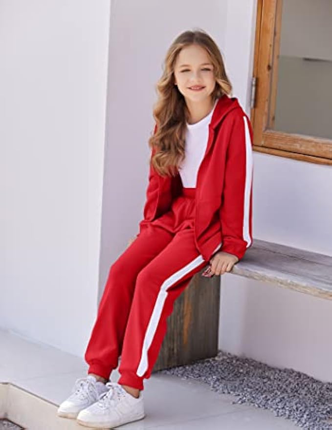 Multi-occasion: Girls' zipper jacket & pant sets are suitable for daily wear at home, school and outdoor sports, or as the girl's birthday gift.