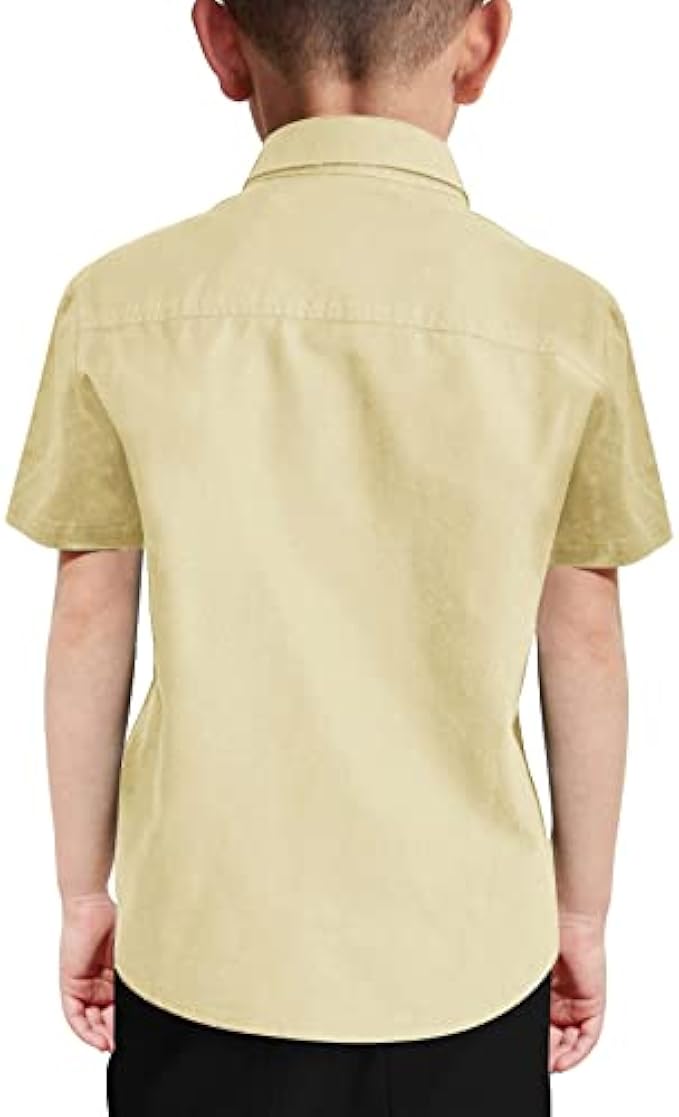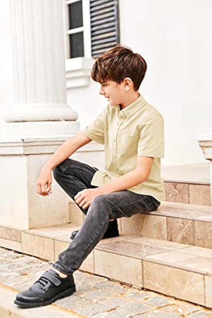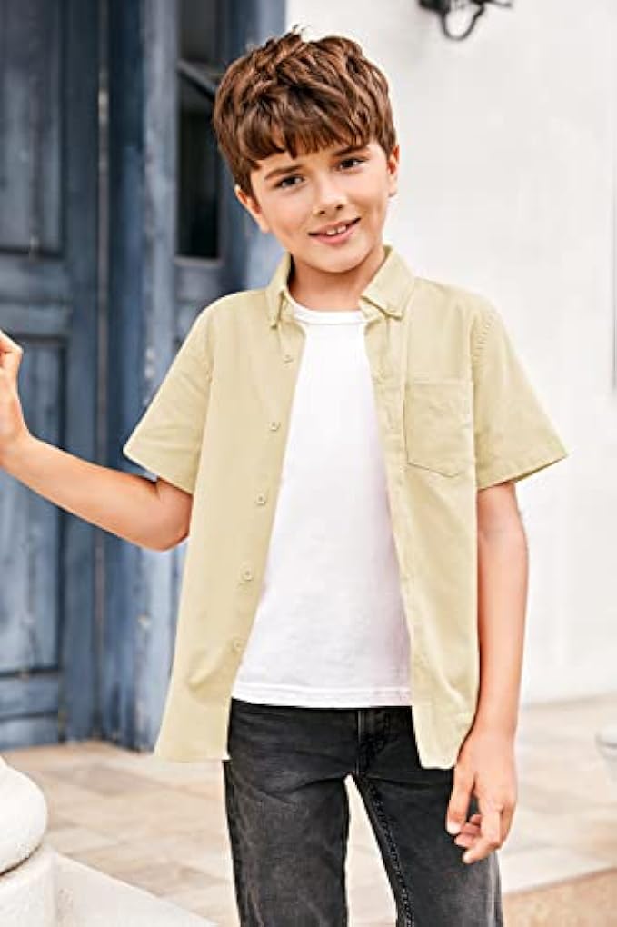 100% Cotton Imported Button closure Hand Wash Only ☀ Comfy Shirt: 100% Cotton. Soft high quality fabric, pure cotton comfortable, breathable, durable, spring, fall and winter shirts, solid color shirts for boys. Making the cute children comfortable and happy in any occasion. Perfect for all day wear. ☀ Feature: Boys button down shirt, short sleeve tops, classic point turn down collar, front button closure, buttoned cuffs, kids boys spring/fall/winter shirt, solid short sleeve shirts, soft and comfy fabric, casual and fashion school uniform. ☀ Occasions: Boys outfits wear for daily or particularly as part of school uniform, homecoming, family photo, party, play, beach, travel, wedding, back to school, easter day, Christmas, New Year gift for son, grandson, boys. ☀ Match: The boys shirt looks good with jeans, turtleneck, jacket, handsome overalls, trousers, etc. Keep kids warm. Hand wash in cold water/Machine wash cold gentle cycle, tumble dry low, warm iron if needed. ☀ Best Gift: If you want to prepare a surprise for your baby, this shirt is the best choice, comfortable fabrics, easy to put on and take off, versatile button down shirt make your baby must be very handsome.