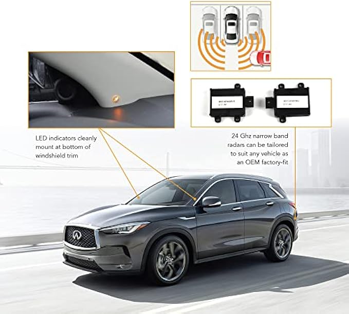 LANE CHANGE ASSIST: Easier to see than outside mirror signals, the system provides near OEM accuracy and quality. Monitors the next lane without triggering warnings for vehicles one lane over; senses high approaching speeds and motorcycles to semis.