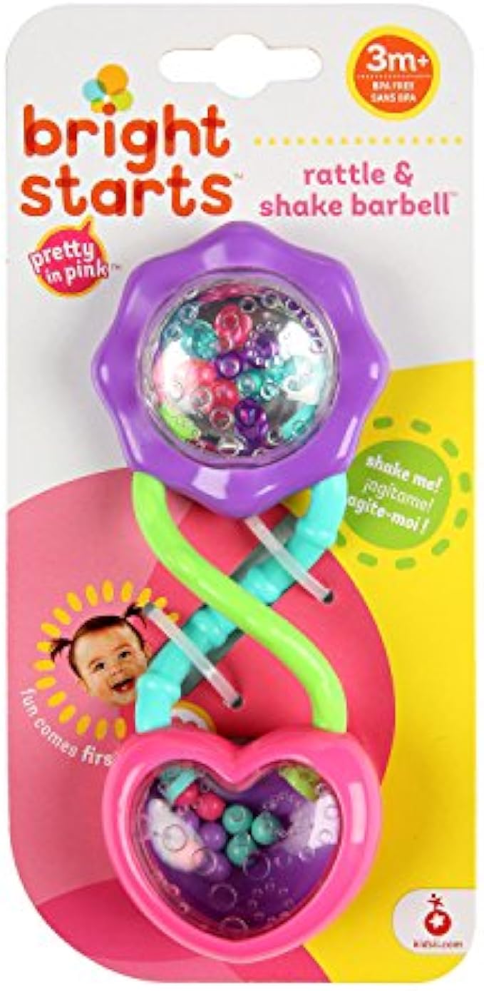 Bright Starts Rattle and Shake Barbell Toy - Pretty in Pink, Ages 3 Months +