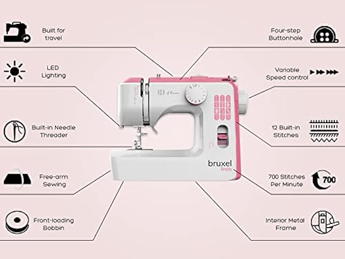 Bruxel Linda Portable Sewing Machine | Easy-To-Use Beginners Sewing Machine with 12-Stitches |Foot Pedal Included | Sewing Machine Accessories