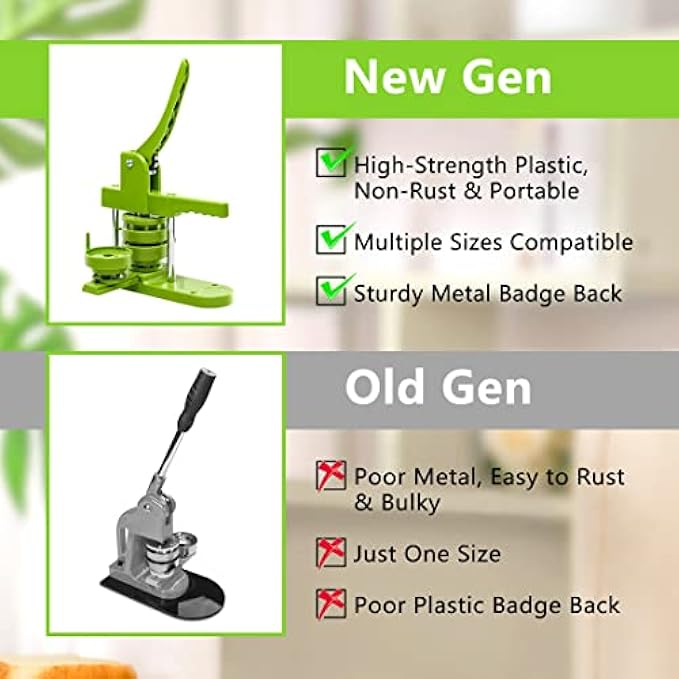 ? Premium Material: Different from other bulky metal pin maker machine, our button badge maker machine is made of high strength engineering plastic, not easy to get rust and more portable to use. Moreover, we provide you matte metal pin back instead of cheap plastic back, it is more sturdy and has better texture.