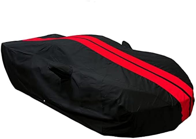 C8 Corvette Ultraguard Plus Car Cover - Indoor/Outdoor Protection Water Resistant 300 Denier : C8 Stingray, Z51, Z06 - Custom FIT for 2020-2023 Corvettes (Black with Red Stripes)