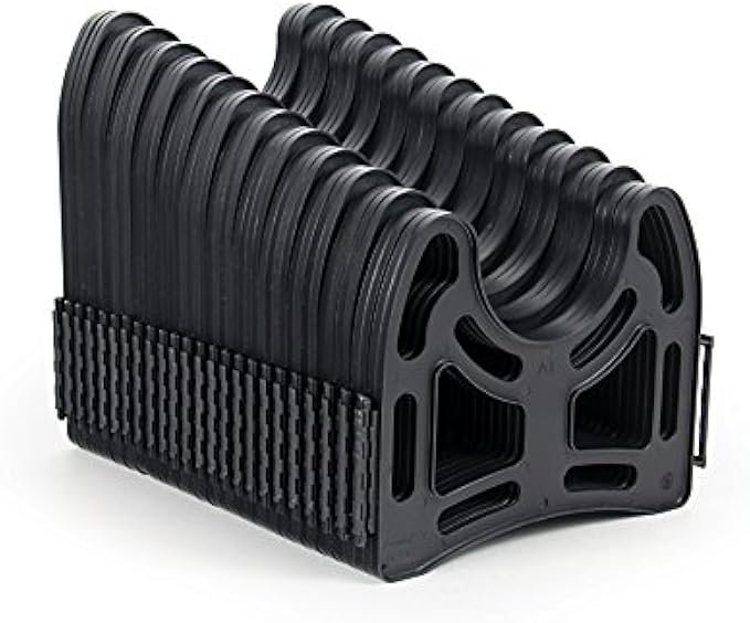 Unique Design: A flexible design allows the support to curve around obstacles; Product is angled to create a downward slope for better drainage; Deep cradles hold your RV sewer hose in place without straps
