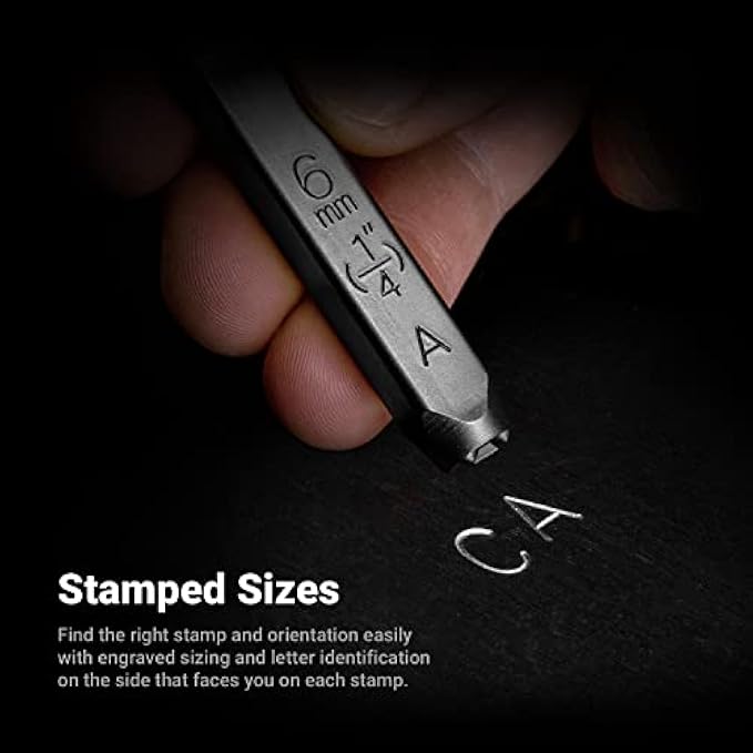 Size and letter identification engraved on the front of each stamp, easy to find the correct stamp and orientation