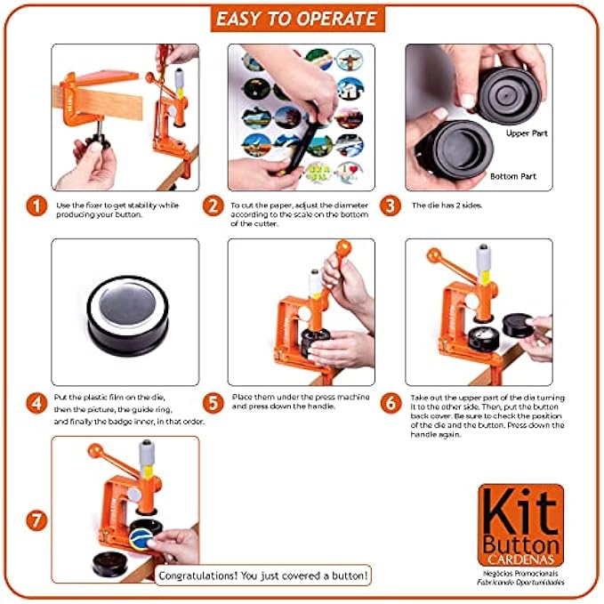 【SUPER COMPACT AND ADJUSTABLE MACHINE】 The button-making machine is ultra-compact, made of high-quality materials, and has a heavy-duty full metal frame. It has a solid base with excellent stability and is adjustable.
