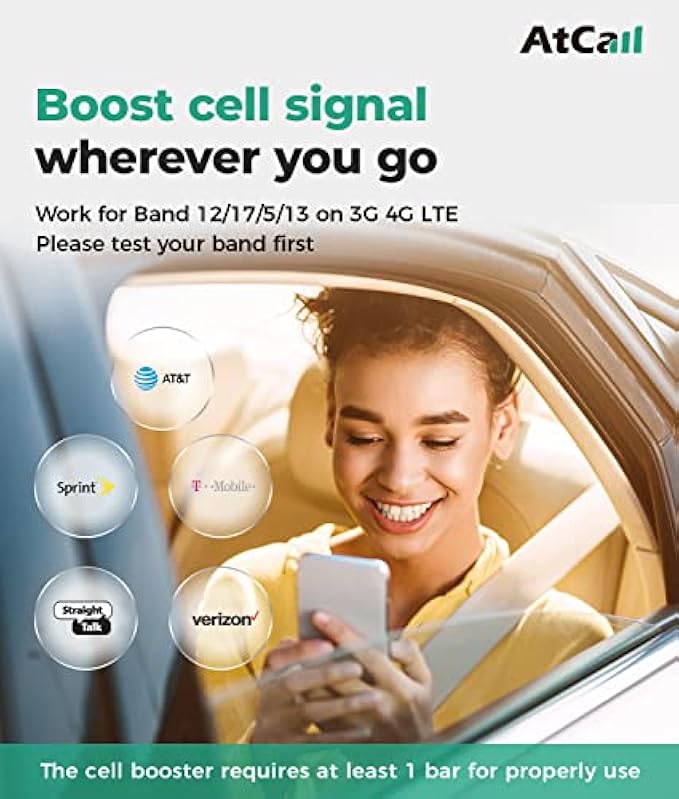 【Support Multi-Carrier & Multi-User】Work for Band 12/17/5/13 on 3G 4G LTE. Please test your band first. Supports multiple carriers, such as AT&T, Verizon, T-Mobile, Sprint and more. this car cell phone booster can provide more reliable cellular signal and faster network for multi-user&multi-device simultaneously. Best for your Car, Truck, RV, SUV, etc. 【Stronger Cell Phone Signal】Max gain to 50dB. You can enjoy excellent voice quality and fast network speed, fewer Missed/dropped calls, perfect for people who need fast uploads and downloads for streaming video, apps such as Google Chrome, Safari, YouTube, Facebook, Netflix and other more, no more buffer time. Cell phone booster for vehicle solve your bad mobile signal problem and enjoy your trip on the way 【Advanced Features】Vehicle cell phone signal booster can 360 degree receive the signal from the signal tower, it has excellent automatic gain control, which can detect the level of available incoming signal, then adjust itself for best performance. It means that the car cell booster will always optimize to provide better signal for you, say goodbye to weak signal 【Hassle-Free Setup】Come with all hardware and user-friendly instruction to help ensure a quick, easy installation, requires no technical experience. Place it in any type vehicle you need improved cellular signal and the amplifier will automatically boost your signal 【FCC Approved】HVIN: SF003, FCC ID: 2A34B-SFZN003. The cell phone booster for truck is compliant with the requirements of the standards applied. 30-day money back guarantee, 3-year manufacturer warranty, excellent tech support. Any problem, please feel free to contact us, we are at your service all the time