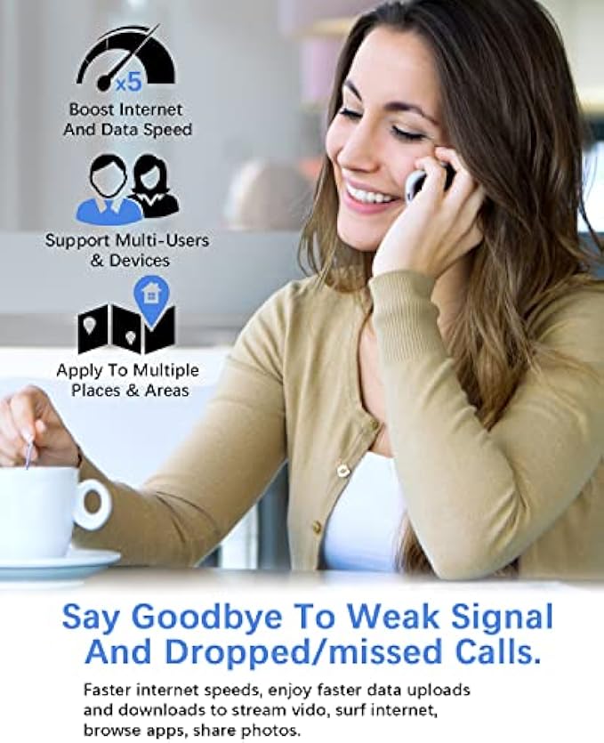 【Booster System Function】The booster can receive the signal from the cell tower and then amplify it to boost your mobile signal. Reduce missed calls and dropped calls and increase 5G 4G LTE data speeds. Supports multiple simultaneous users. Compatible with all brands of cellular devices, including Mi-Fi hotspots, cell phones and cellular data routers, while extending battery life. You will never have weak signals or dead zones again.