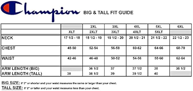 FEATURES: The oversized tees have a full cut for roomier fit. The crewneck provides a nonrestrictive fit and the short sleeves allow for a wider range of motion. A special feature is that these mens big and tall shirts proudly display the Champion logo across the front chest.