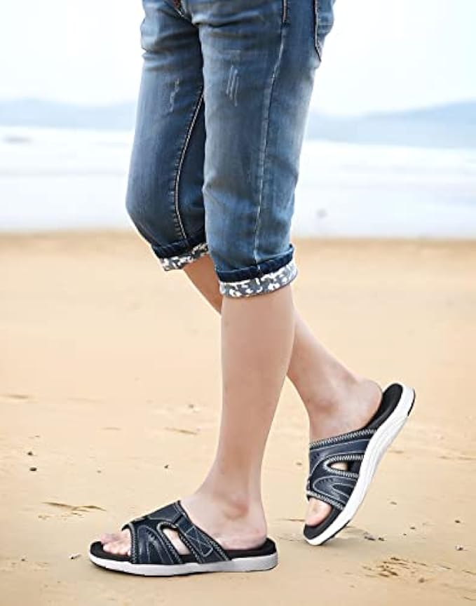 Rubber sole Men Sport Recovery Slide Sandals: Wear it as post exercise Men’s Open Toe Sandals, thick soft insole provides excellent cushioning, rebound and elasticity. Recovery slides for Men can relax the tight muscles and joints of the feet, reduce the pressure on the feet, and helps recovery from plantar fasciitis and other. Orthotic Slides for Men with Arch Support: Orthopedic Men’s athletic slide sandals feature cushioning yoga mat footbed insole and deep heel cup, conforms to the arch, can correct your foot posture, providing all-day comfortable walking experience. Breathable Mesh Upper with Adjustable Strap: Mens Adjustable House Slides with lightweight mesh fabric upper and adjustable straps for wide fit, sandalias para hombres can help your feet breathe, avoid the duration of sweat odor, suitable for wide feet, high insteps, flat feet and other popular foot types. Lightweight, Durable&Non-slip Rubber Soles: Mens Pillow Style Slides Sandals, can slip on easily, thick and durable outsole with non-slip texture, enhances traction on wet surfaces for Cloud Slides for Men with non-slip safety, perfect for indoor and outdoor walking. Comfortable Cushion Slides for Men: Men's Soft Comfy Slides are suitable for beach, gym, garden, walking, running, swimming, ball sports, holiday, leisure and work. COFACE Plantar Fasciitis Slide Sandals for Men are great gift idea for papa, husband and boyfriend.