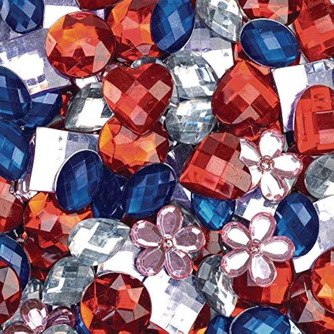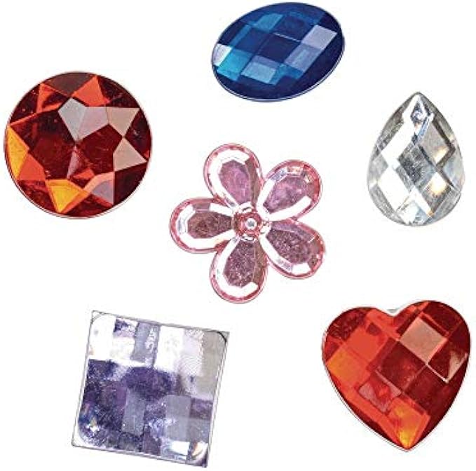 ASSORTED SHAPES & COLORS: 5 different shapes included; round, oval, teardrop, square, heart and flowers. 5 colors included; blue, red, pink, purple and clear.