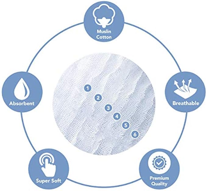 6 Layers of Thickness and Large Size: Our burp cloths feature 6 layers of absorbent muslin cotton, providing superior protection against spills and spit-ups. At 20x10 inches, they offer ample coverage for your baby's clothing and your shoulder. The extra layering adds thickness and durability, making them long-lasting through multiple uses and washes. Keep your baby clean and dry with our muslin burp cloths.