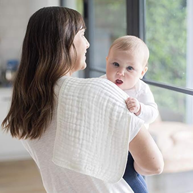 Comfy Cubs Muslin Burp Cloths Large 100% Cotton Hand Washcloths for Babies, Baby Essentials 6 Layers Extra Absorbent and Soft Boys & Girls Baby Rags for Newborn Registry (White, 10-Pack, 20" X10")